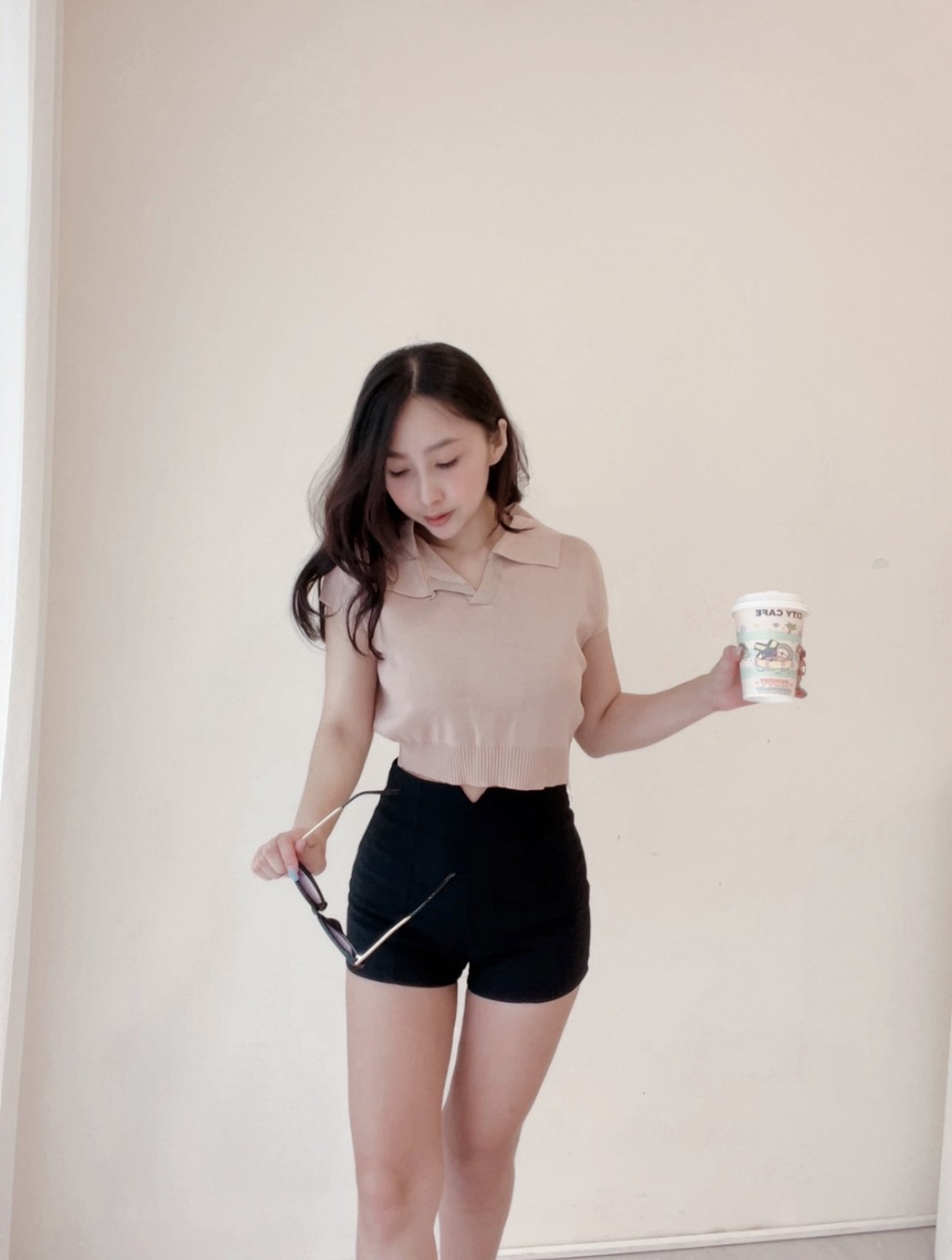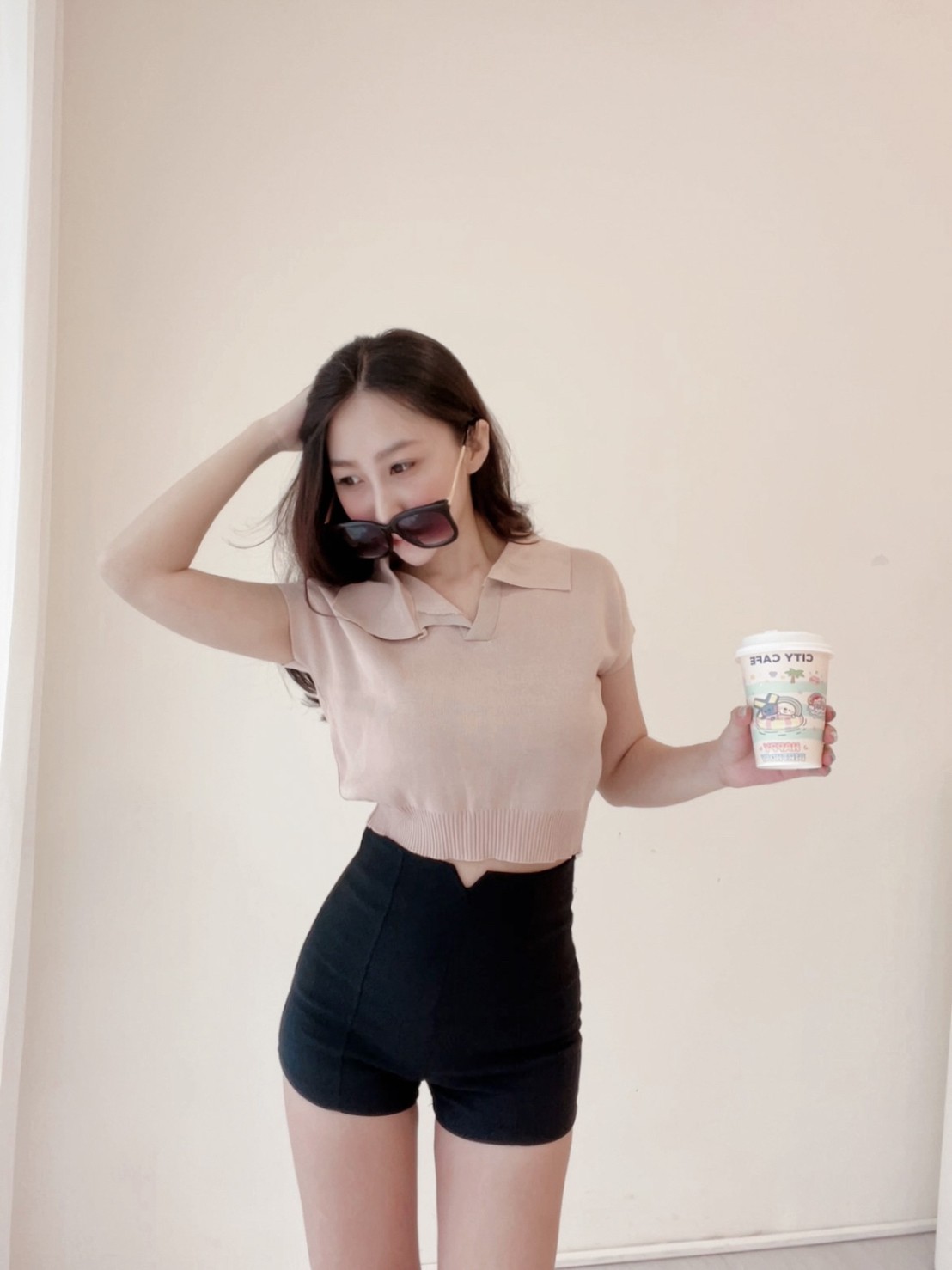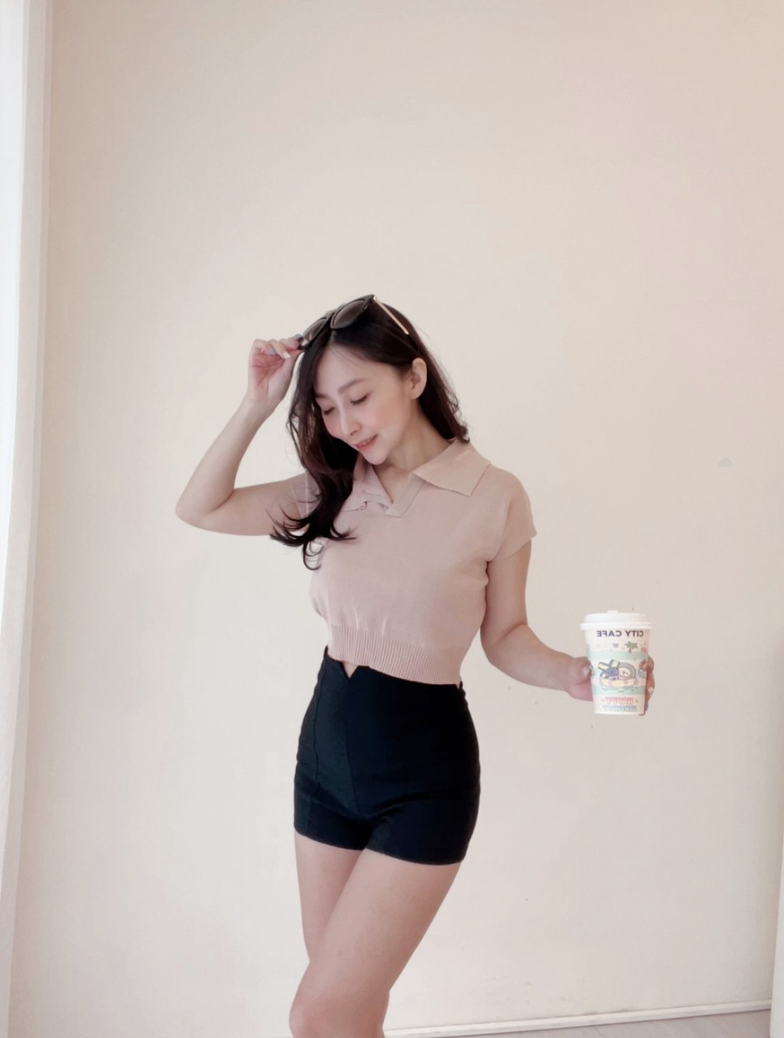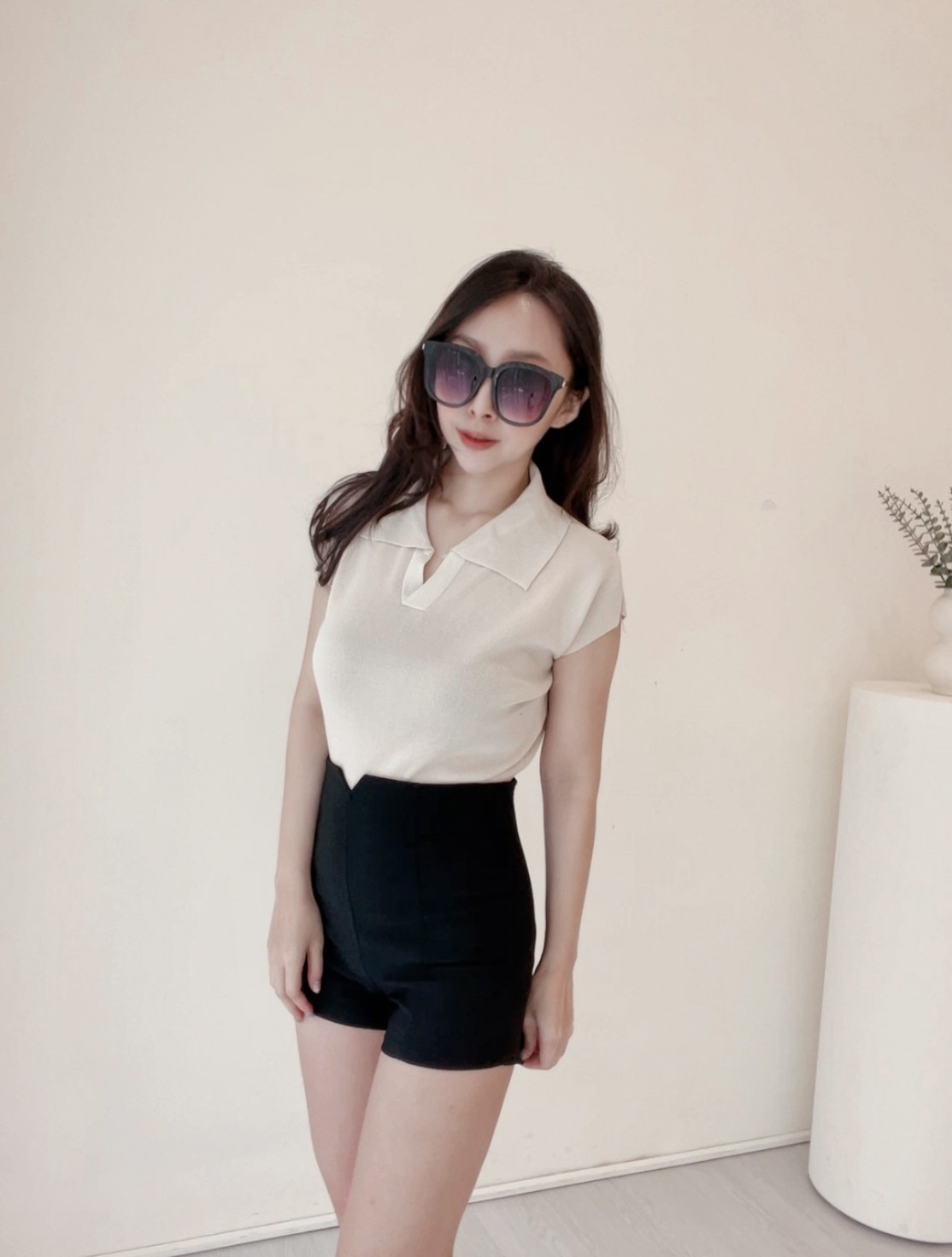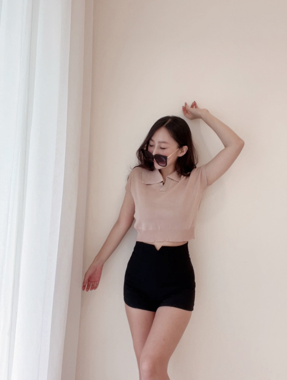 襯衫小翻領搭配短版縮腰設計